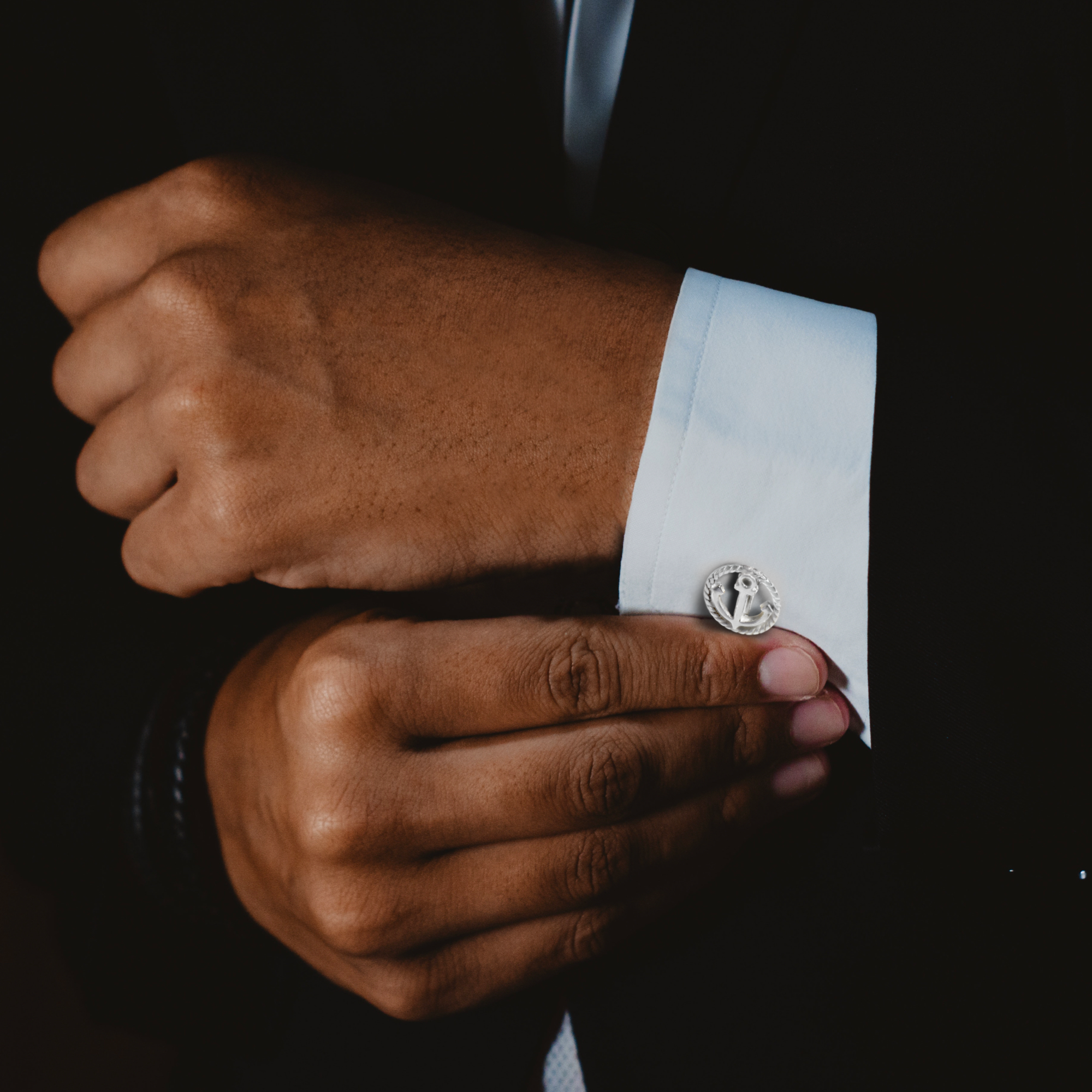 Gemelli raffiguranti l’ancora marina, realizzati in argento 925. Chiusura torpedo, Made in Italy
