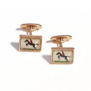 - i gemelli vintage tema ‘equitazione’, in ottone placcato oro con serigrafie su resine